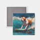Immerse yourself in the playful world of canine adventure with this captivating painting. A spirited dog takes to the waves, skilfully riding the surf on a sun-kissed beach. The vibrant artwork beautifully captures the essence of beachside excitement as the dog fearlessly rides the waves, embodying the spirit of fun and freedom. With a harmonious blend of colours and dynamic brushstrokes, this piece brings the joy of surfing and the beach right into your space, making it a delightful addition to any art collection