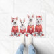 Unique and strong Bull Terriers, known for their distinctive profile and spirited nature, look amusingly festive in their Christmas Santa outfits! A fun design for Bull Terrier owners.