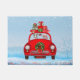 Bull Terrier Dog In Car With Santa Claus Doormat