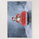 A Christmas truck going through snow delivering Christmas gifts and bull terrier dog. A perfect Christmas gift idea for someone who love this dog breed.