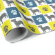 Bull Terrier Dog & Paw Yellow & Blue Grid Wrapping Paper