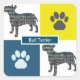 Bull Terrier Dog Silhouette & Paw Y&B Grid Square Sticker