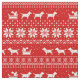 Red and white Christmas sweater style pattern with a squirrel riding a sleigh pulled by Bull Terriers. A fun pattern for your next sewing project, great for creating original handmade Christmas gifts. Visit Jenn's Doodle World for even more pet lover’s fabric and Bull Terrier designs.