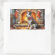 Bull Terrier Fireplace with Christmas Lights Rectangular Sticker