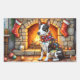 A festive Christmas scene featuring a lovable Bull Terrier sitting beside a warm, glowing fireplace adorned with stockings and wrapped in twinkling Christmas lights. This charming holiday artwork captures the Bull Terrier’s playful yet loyal nature, making it a perfect addition to any dog lover’s seasonal decor. Celebrate the warmth of the holidays and the joy of canine companionship with this cozy, heartwarming design.