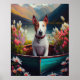 Bull Terrier on a Paddle: A Scenic Adventure Poster