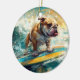 Bulldog Beach Surfing Painting Ceramic Tree Decoration