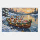 Bring lovable, wrinkly charm to your holiday season with this adorable Bulldog Christmas design! This magical scene features three charming, sturdy Bulldogs sitting contentedly in a cozy wooden boat, gently floating on a serene snowy lake at sunset. The boat is beautifully adorned with glowing Christmas string lights and fragrant pine garlands, while the dogs wear festive scarves. They are surrounded by colorful wrapped presents and cheerful holly branches. Soft snowflakes gently fall, and the shimmering reflection of the lights on the water creates a truly magical winter holiday atmosphere. This design is a perfect Christmas gift for any Bulldog owner, dog lover, or admirer of festive and beloved dog art, capturing the serene joy of the season.