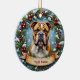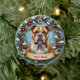 A beautiful, ultra-detailed Christmas ornament design featuring a realistic portrait of the breed centered within a soft, festive winter frame. This elegant design includes pine branches, red berries, and snowflakes against a snowy backdrop, illuminated by warm holiday lighting. The balanced, round composition includes clear space below the dog for customization.