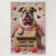 This humorous illustration captures the charm of the Bulldog, portrayed as a special, grumpy-but-sweet Valentine's gift waiting in a box labeled "Handle With Care." A funny and unique design for Bulldog lovers.