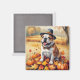 Bulldog In Autumn Leaves Thanksgiving Art Magnet