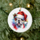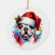 Bulldog in Santa Hat Personalised Christmas Ceramic Tree Decoration