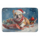 Bulldog in Sledge Let it Snow Christmas Bath Mat