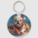Bulldog in Sledge Let it Snow Christmas Key Ring