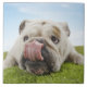 Bulldog Lying on Grass Licking Lips Tile