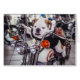 Cute, chubby, loveable, bulldog sits on a cycle in a motorcycle shop. Great gifts for any dog lover.