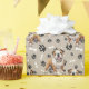 An image of a cute brown and white Bulldog is the feature in the pattern on this all occasion gift wrapping paper. The dog sits amid a pattern of black paw prints and white bones, and is repeated on a light tan background. Perfect for the Bulldog owner or fan!