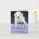 An adorable photograph of a very young Bulldog puppy adorns the front of this card. A purple background with a retro design and customisable text that reads: "We don't stop playing because we grow old; we grow old because we stop playing" Additional inside customisable text reads: "No Birthday card holds more love than this 'cause it's mailed with a hug and it's sealed with a kiss!".
