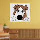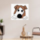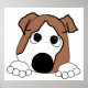 bulldog red and white peeking cartoon poster