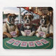 Three Bulldogs are playing cards on the deck of a riverboat.