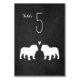 Bulldog bride and groom silhouettes with heart. A chalkboard style wedding reception table card for English Bulldog lovers. Each card must be numbered and added to cart separately. Visit Jenn's Doodle World for even more dog breed table cards and wedding planning products.