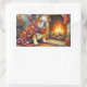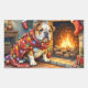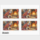 Bulldog Sitting by Fireplace with Christmas Lights Rectangular Sticker
