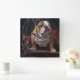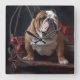 Bulldog Snowy Sleigh Christmas Decor Square Wall Clock