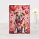 Bulldog Valentine’s Day Dog with Hearts Red Card