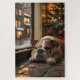 A heartwarming holiday scene featuring a dog sitting peacefully beside a window, surrounded by glowing Christmas lights. This cosy and festive design captures the spirit of the season, perfect for adding warmth and charm to any space. Ideal for dog lovers and holiday decor enthusiasts.