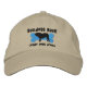 Bulldogs Rule! (other dogs drool) Funny English Bulldog embroidered hat for dog lovers. A silhouette of the wrinkly breed is in front of a blue bone.