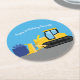 Bulldozer Birthday Party Construction Round Paper Coaster