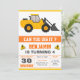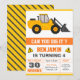 Amaze your guests with this cool construction theme birthday party invite featuring a cute yellow bulldozer with modern typography against a white background. Simply add your event details on this easy-to-use template to make it a one-of-a-kind invitation. Flip the card over to reveal a vibrant yellow and black stripes pattern on the back of the card.