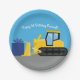 Bulldozer Cute 1st Birthday Party Construction Paper Plate
