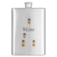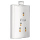 Fun stainless steel flask, with graphics of bullet holes and golden drops of liquid leaking out. Personalise the grey text, to suit your needs. Great personalised gift idea.