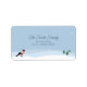 Christmas Return Address Label Sticker with a bullfinch in the foreground and fir trees in a snowy landscape: use them at home or office on your letters or packages!