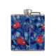 Bullfinches, red birds blue forest trees fibre art hip flask