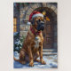 Celebrate the loyal and protective spirit of the Bullmastiff this Christmas! This grand painting features a noble Bullmastiff, wearing a festive Santa hat and velvet collar, sitting calmly as the silent guardian of a historic, snow-dusted manor entrance. Perfect for Bullmastiff owners and admirers of powerful, yet gentle, companion dogs. Ideal for high-end Christmas cards, sophisticated home decor, and gifts that convey a sense of security and majestic warmth during the festive season.