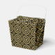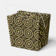 Bullseye-BLACK and GOLD-TAKE OUT FAVOR BOX-Circular rings of gold rest on a solid black background. The round bullseye rings is an allover background print. This design is available in assorted colours, some with solid rings and some with textured beveled rings. This design is suitable for year round use. Choose any size of Zazzle's Paper Plates available