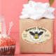 Use this label as a template for creating honey jar labels from different flower blossoms, with customised text to add a name of the apiary or beekeeper, each floral variety, contact information and net weight. Bumble bee graphic stands out against a white background in the centre, surrounded by a geometric pattern. Stickers will fit large, quart and half gallon size mason jars, and large glass containers. © dotpattern
