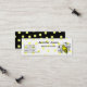 This wonderful calling card is perfect for a mummy or daddy. It has a white front with yellow polkadots and black text. A bumble bee sits on the right side. The back is black with yellow polkadots. All text is customisable so your children can get a play date!