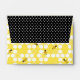 Sweet bumble bees buzzing over honeycomb pattern with black and white polka dot contrast.
