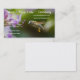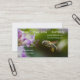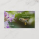 Bumble Bee Business card . The Bumble Bee all covered in pollen from pollination of the flowers. flying towards a purplish flower bud with yellow pollen on the end. this is a the yellow and black honey bee. With a green faded back ground.