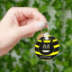 These adorable key chains are great for yourself or as souvenirs or party favours! Design features a bright yellow and black stripe background and I black bumble bee face in the centre. This happy little bumble bee has a big white grin and has yellow and black eyes. Above and below the bumble bee's happy face is a place for your own text. Customise to suit your needs or delete and leave it plain. These key chains match our New Bumble Bee Children's Birthday Party Invitations.