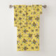 Cute repeat pattern of lots of bumble bees on a yellow background.