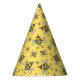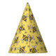 Cute repeat pattern of lots of bumble bees on a yellow background.