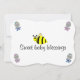 Smiling yellow bumble bees with black stripes and fluttering wings on front and back. Fun gender reveal or to keep the guest guessing until baby's arrival day. Front has the wording in pink and blue text, Girl? or Boy? A Sweet Baby Is On The Way is written in orange on the bottom. Personalize with mom-to-be name in red and details. Backside has pink, blue, yellow green rattles and bee with Sweet Baby Blessings written in black typography. Original Artwork and Designs © TamiraZDesigns.