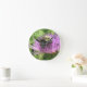 This wall clock features a bee gathering nectar on a thistle blossom in a meadow in Connecticut.