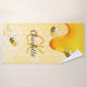 Yellow, white background with a bee honeycomb pattern and happy smiling bumble bees. Decorated with sweet, golden honey dripping. Personalise and add your name and monogram initials, golden and black letters. The name is written with a hand lettered style script. Perfect for your summer home!
