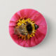 This button features a gorgeous close up photograph of a bumblebee sitting on a pink zinnia flower. It is so detailed you can see its furry body and glistening wings. This is a celebration of a much loved and very hard working little creature.