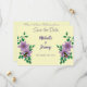 A cute bumblebee gently sits among two delicate lavender flowers and fresh green leaves, all set against a soft creamy yellow backdrop. Perfect for a wedding that celebrates love and the beauty of the outdoors.